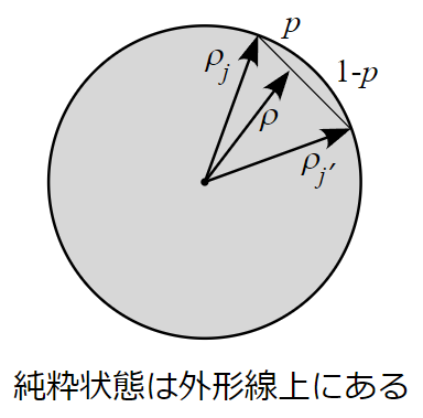 は、確率 $p_j$ で $|\psi_j\rangle$ が、確率 $1-p_j$ で $|\psi_{j'}\rangle$ が現れる混合状態を表す。