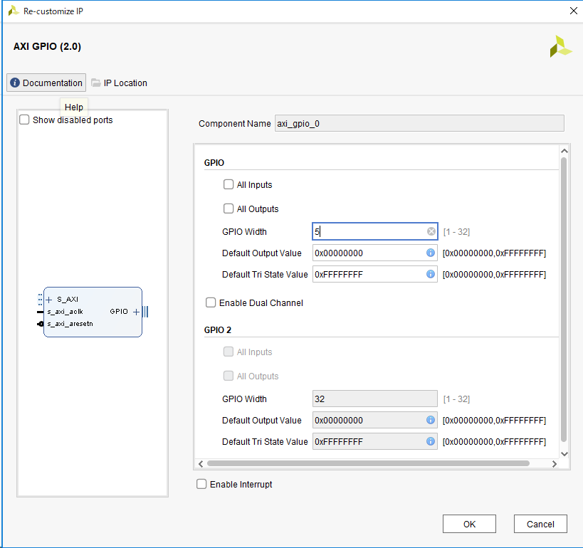 vivado のブロックデザインから AXI GPIO IP をダブルクリックして、 Documentation をクリックすると、IP の Help を参照できる。