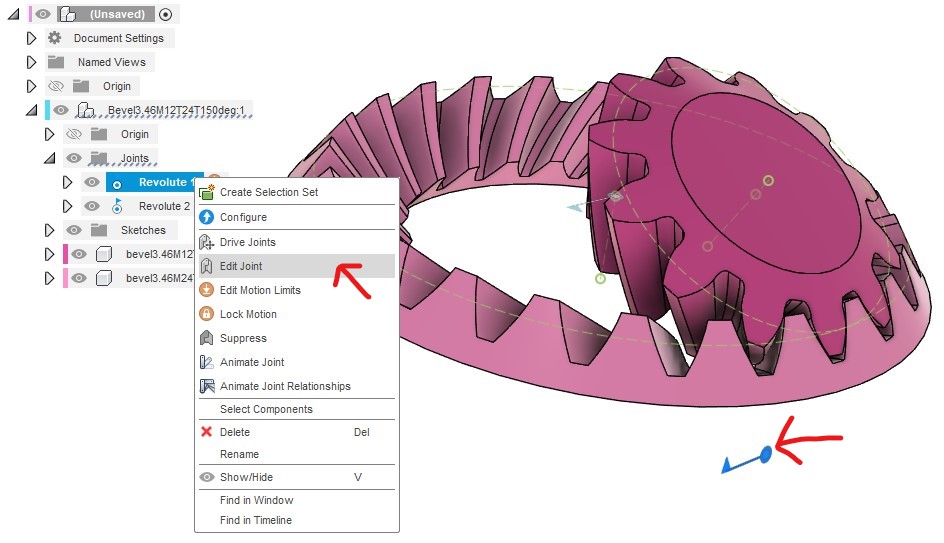 通常の内歯車のケースと同様に、内歯かさ歯車は歯数の組み合わせによって干渉を起こし、 実際には回転しない形状が生成されてしまうため、製作に移る前に Fusion 360 上で 干渉がないことを慎重にチェックする必要があります。