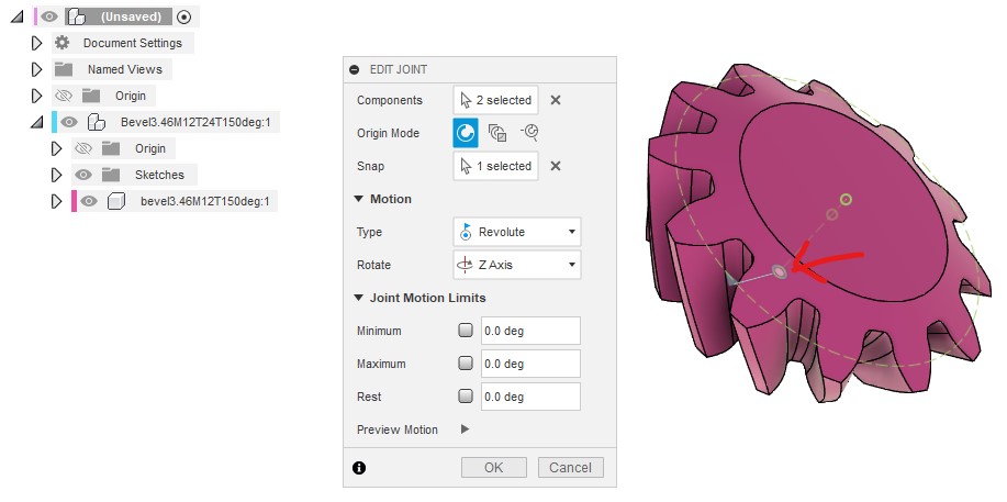これらの歯車は回転ジョイントで固定されていますので、モーションリンクを設定すればすぐに連動して動かせます。