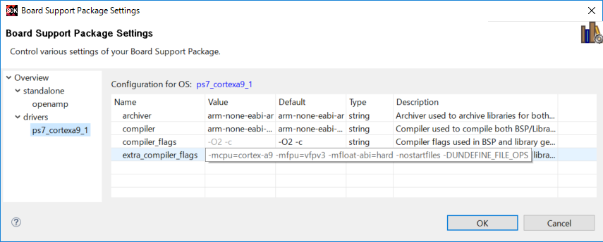 [Overview]-[drivers]-[ps7_cortexa9_1] を選んで [extra_compiler_flags] を確認すると、 _open(), _close(), _read(), _write() をマスター側にリダイレクトするためのオプション