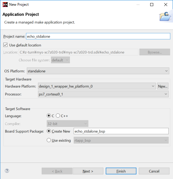 Binaries の下に echo_stdalone.elf ができた
