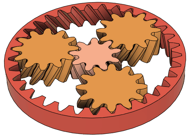 • 内歯車と遊星歯車の歯数は干渉せず回る値になっている