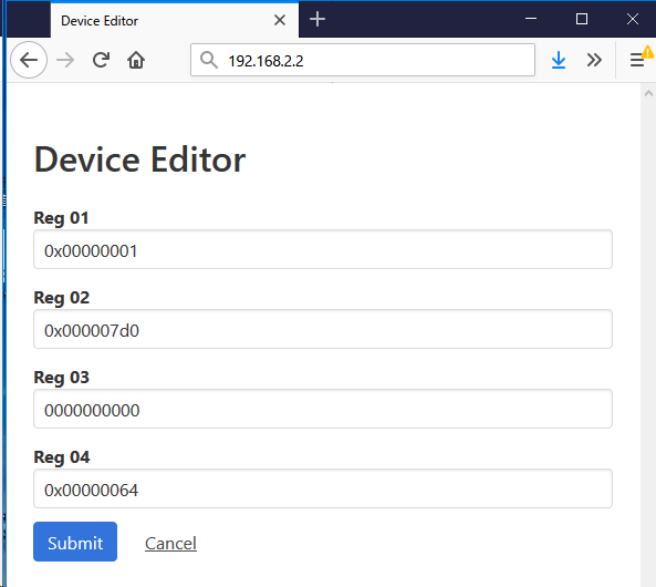ブラウザから読みに行けば、フォームにレジスタの現在値が表示される。