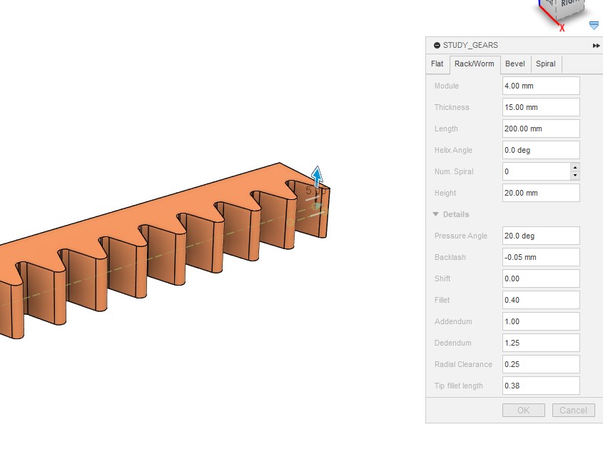実は現状では歯先の延長のユーザインタフェースは使いにくくなっていて、 ここで入れた値は歯先の延長部分に付けるフィレットの最大半径なのですが、 必ずしもこの半径分だけ歯先が延長するわけではなく、これはあくまで目標値にすぎません。