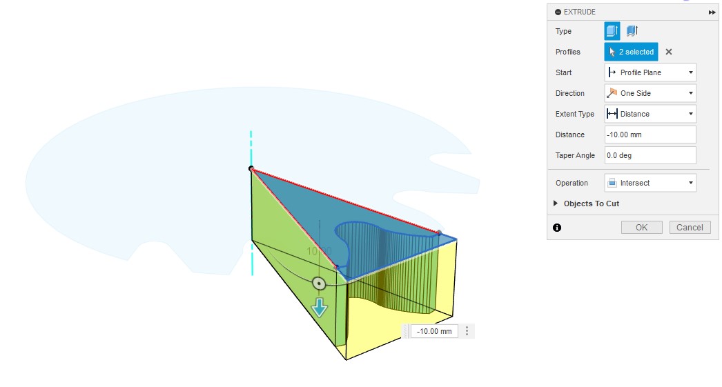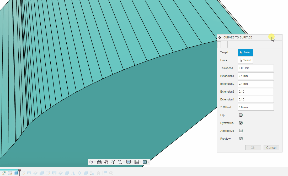 - 選んだ Lines を繋げた曲面の上下 0.01 mm を切り取ります