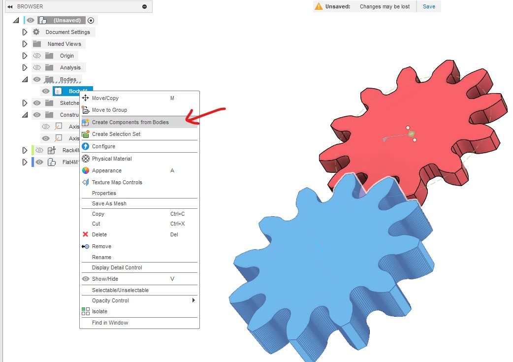 切り出しで作成した青の歯車をコンポーネント化し、