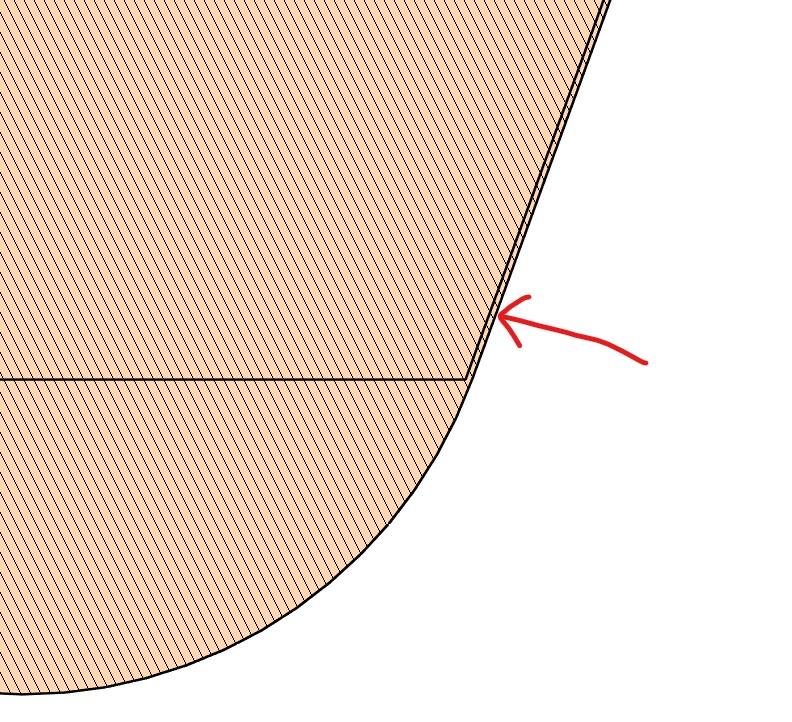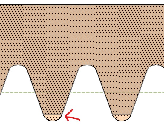 本来なら歯の延長量を正確に設定できるようにするため、 この部分は歯先の延長量自体を指定して、 その角の部分にフィレットを付けるように変更すべきですね。 その際にフィレットがインボリュート部分を食ってしまってはいけないので、 歯末の丈 addendum でインボリュート領域を指定し、 頂隙 Radial Clearance の値を歯先の延長量として使うのが良さそうです。