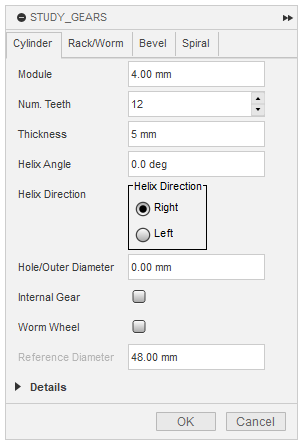 平歯車(すぐ歯、はす歯、内歯車)およびウォームホイールを生成できます