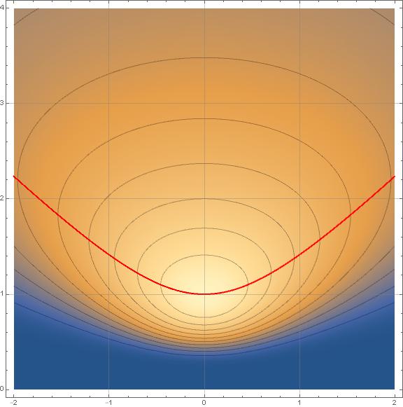 のときこの関数をプロットしてみると次のようになる。 横軸が 縦軸が であり、明るい部分ほど確率が高い。 赤線については後述する。