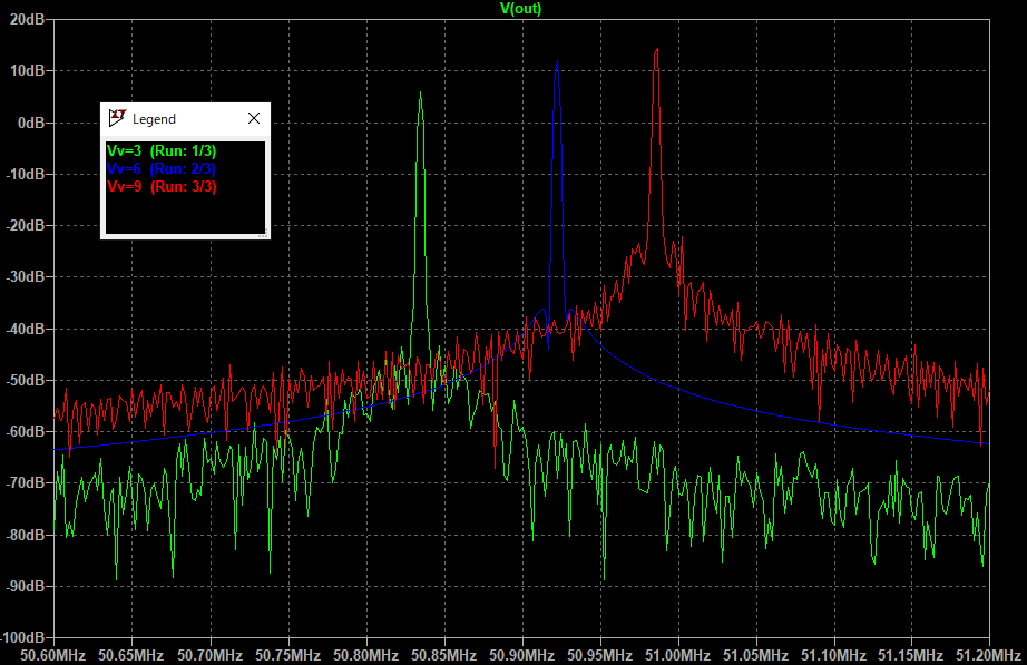 このピークは非常に緩やかなので、上で指摘したような変調レベルによる発振周波数の変化は 受信時性能に影響しない。