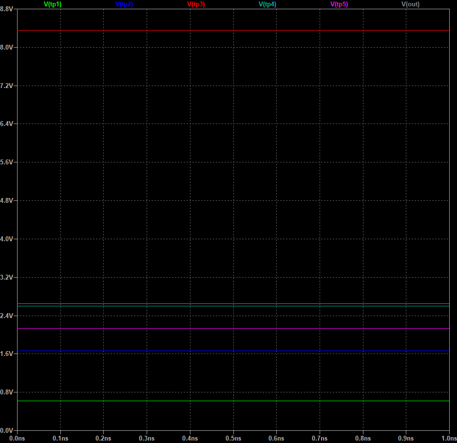 プロットはそれぞれ回路図中のテストポイント位置の波形にあたる。