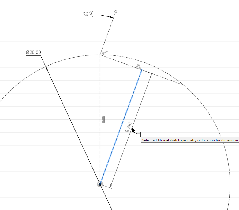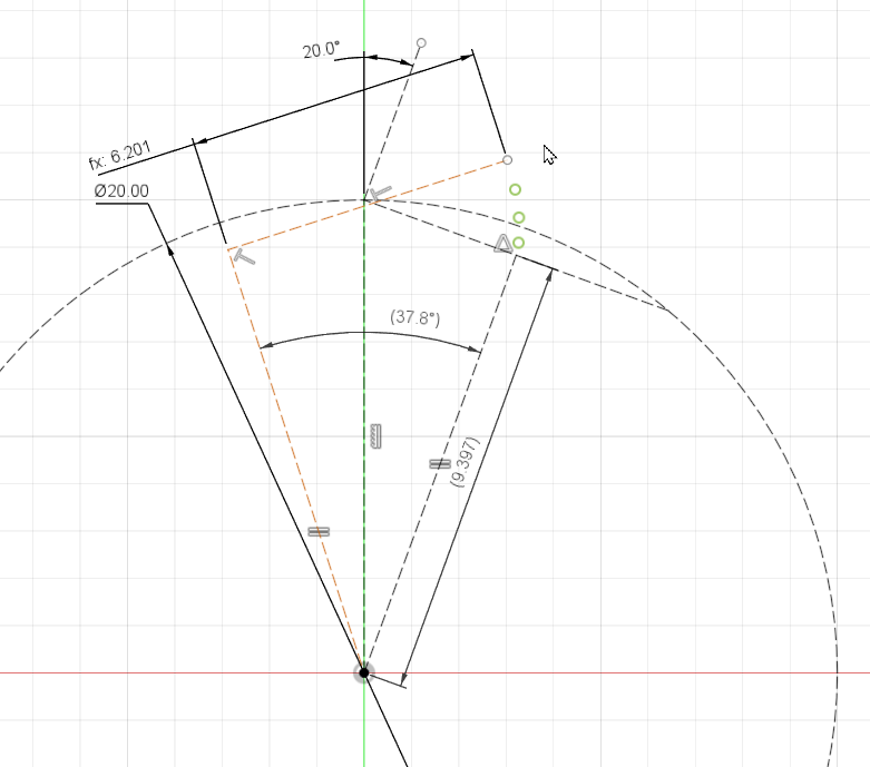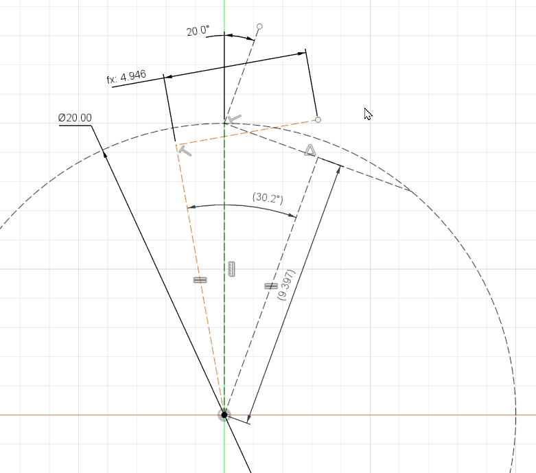 - 基準円を原点を中心に直径 2 x 10 = 20 mm で描く