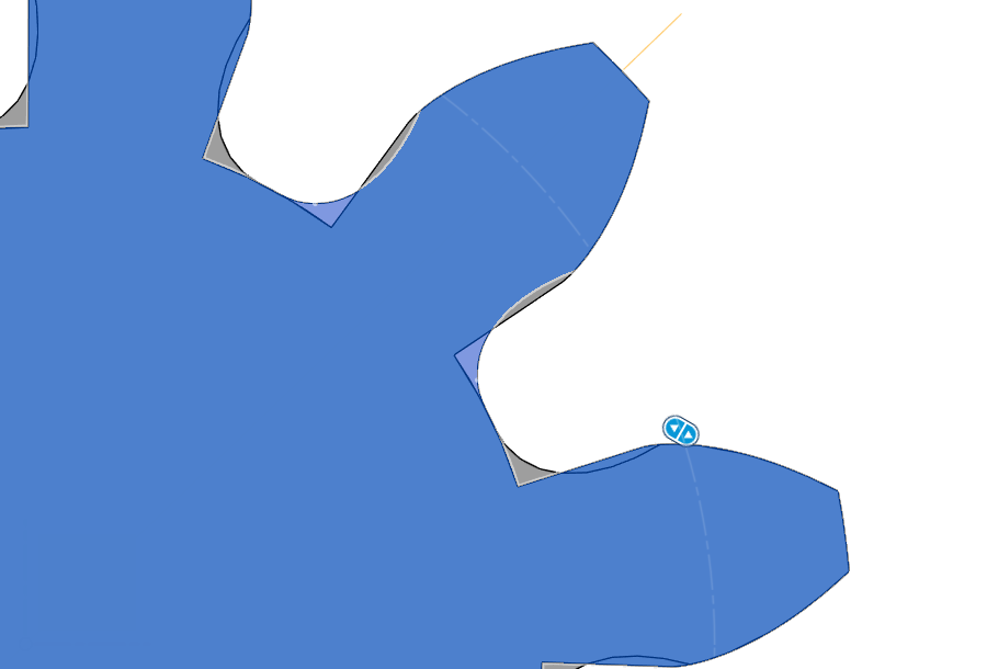 歯元の曲線はラック形状の切削工具で歯車を切り出す際に自然に形成されるものであるため、その作業を CAD 上で再現する