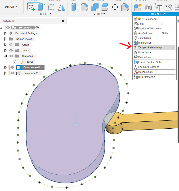 フォロワーコンポーネントとルートコンポーネントを選択して、両者の間に構築済みジョイント(スライド)をフォロワーの辺に沿って生成します。