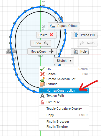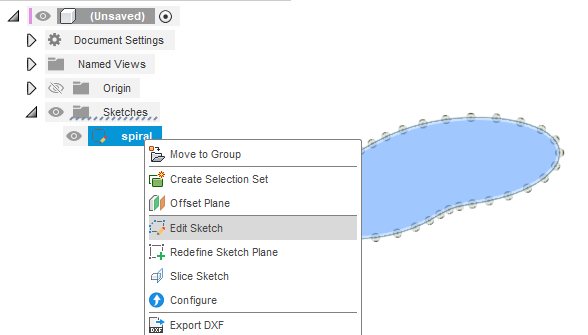 生成されたカム形状の入ったスケッチを編集モードにします。