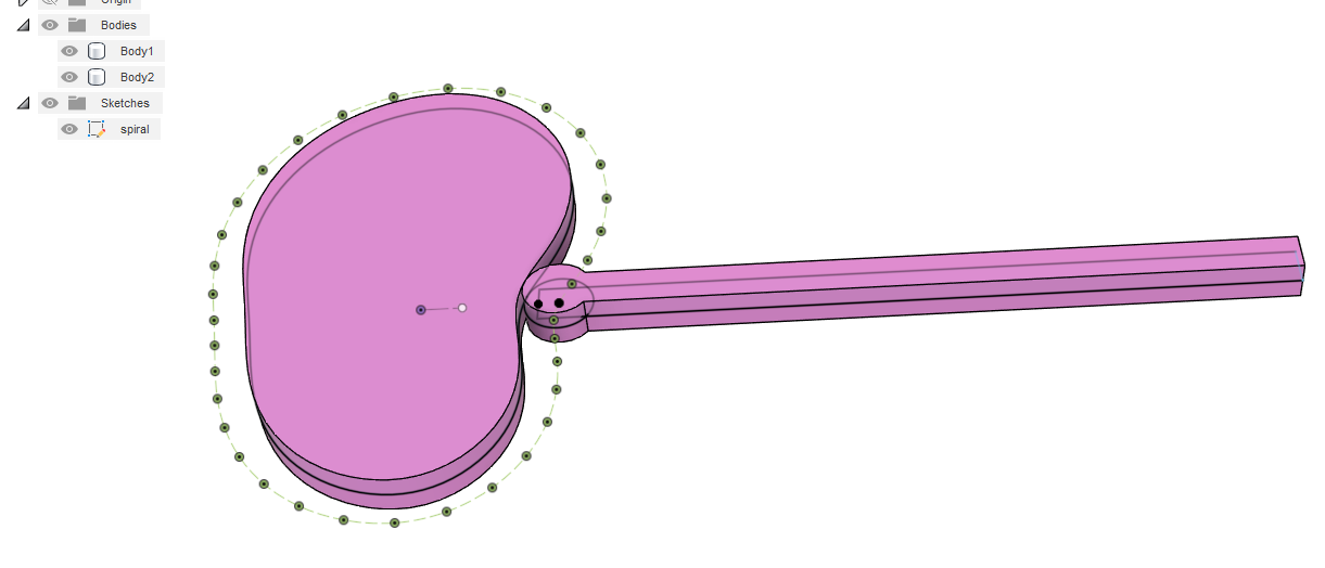 そこで実際のカム形状はスクリプトで生成した仮想的なカム形状からフォロワー先端の半径分だけ内側へオフセットしたものとします。