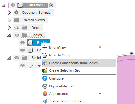 カムとフォロワーの2つのボディを別々にコンポーネント化します。