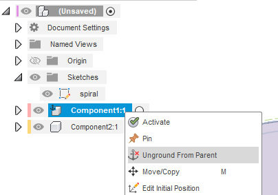 1つ目のコンポーネントが「親に固定」されてしまうため、固定を解除します。