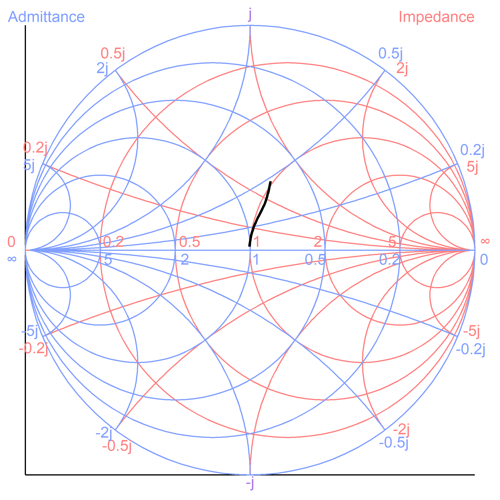 スミスチャートを見ると、30GHz くらいまではインダクタンス的な応答が見えていて、それ以降は・・・キャパシタンス的な影響なのかな? 何か違う影響が見えている。