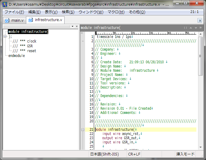 更新Verilog を書くためのエディタとして秀丸は結構便利に使えそうです†