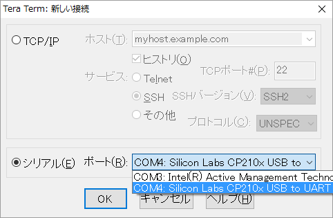 Tera Term で [新しい接続] を開いたら、z-turn の繋がっているシリアルポートを開きます。