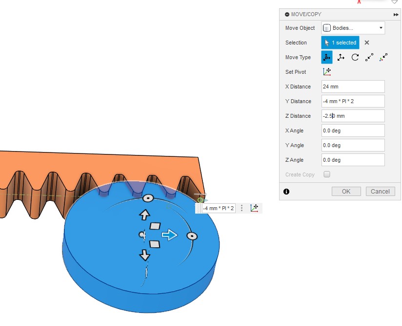 - ついでに噛み合いに余裕を持たせるため $z$ 方向にも 2.5 mm 移動