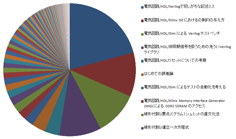 IE8 によるアクセスの多いページを列挙すると、HDL 関連だけで過半数となっていて、 この内訳は、名前は伏せますが、ほぼすべて企業ドメインからのものになっています。