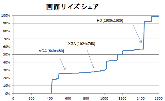 2/3 は XGA 以上ですが、残りの 1/3 は携帯端末からで、画面サイズは 640x480 を下回ります。