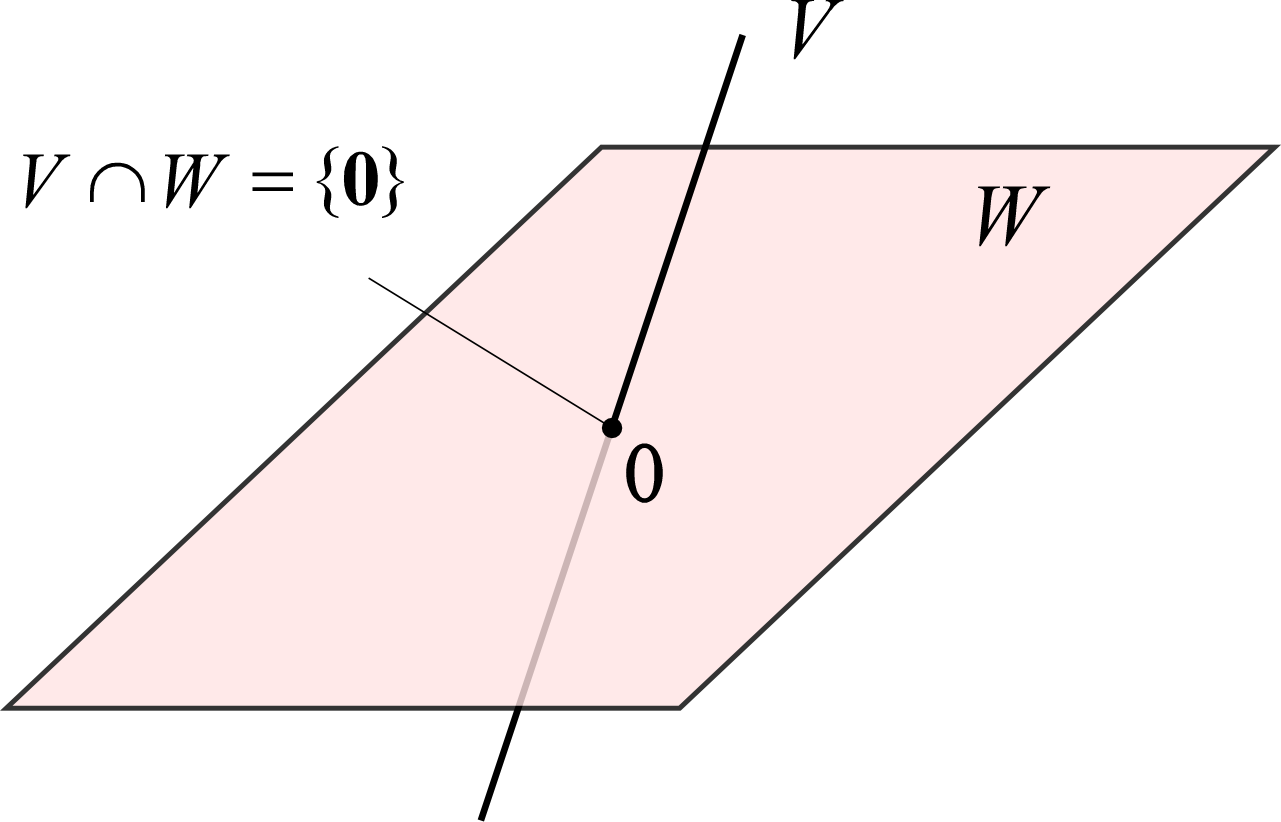$V\cap W=\{\,\bm 0\,\}$ のとき、$\dim(V\cap W)=0$