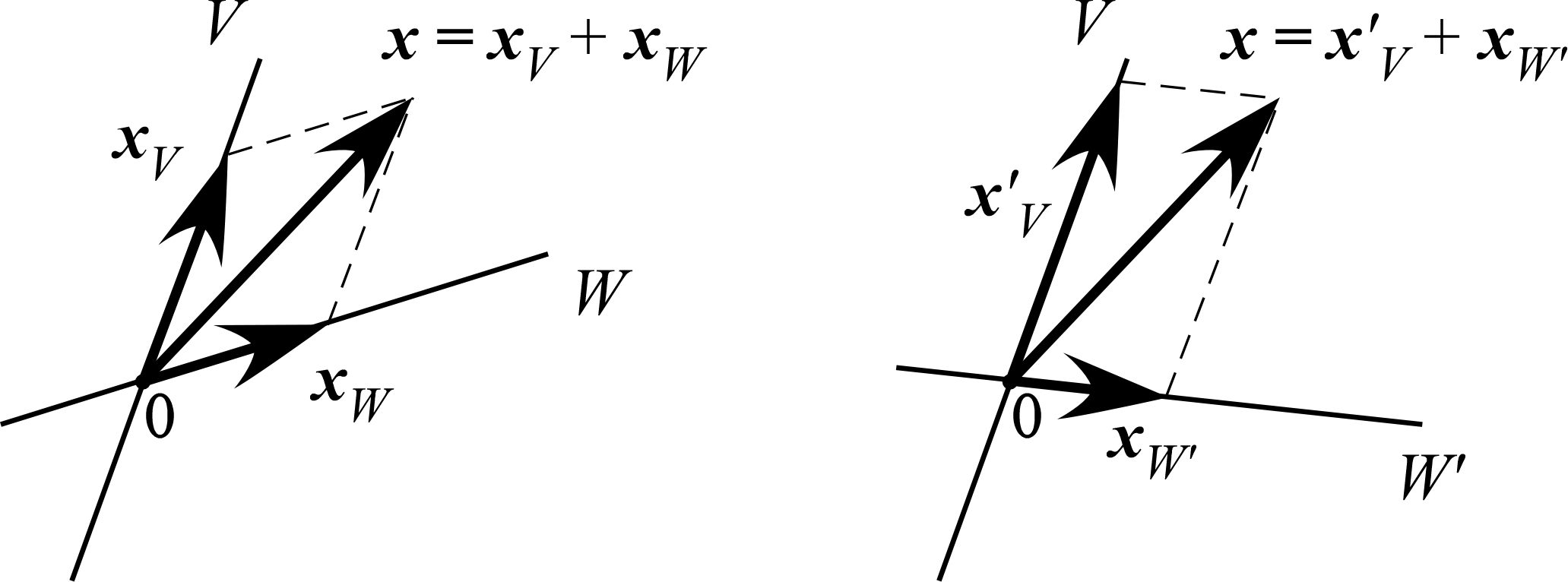 $$\begin{aligned}V+W\equiv\{\,\bm x=\bm x_V+\bm x_W\,|\,\bm x_V\in V,\bm x_W\in W\,\}\end{aligned}$$