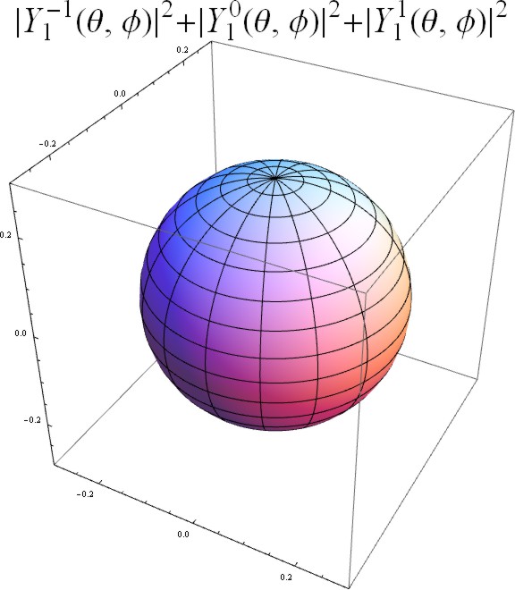 すなわち、球対称な定数関数となる。下図は