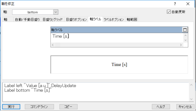 複数のグラフの見た目を揃えたい場合など、 ある動作を繰り返し行いたい場合に使える最もお手軽な方法は、 コマンドウィンドウに(複数の)コマンドをクリップボードから貼り付けて実行するやりかたです。