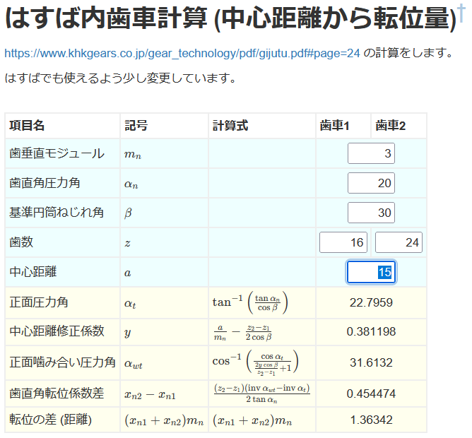 KHK さんの資料でははすば内歯車の計算がなかったので 工作/歯車について勉強する3#a6919964 は外歯車の計算をまねて作ってみたのだけれど・・・ちゃんと計算は一致するのか?