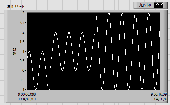 もちろん、正弦波だけでよければ標準の波形生成コンポーネントがあるので、 それを使えばいいのですが、もっと凝ったものを作りたいとき、 上記の wavegen-sin.vi を改造すればいろいろできる、という話です。